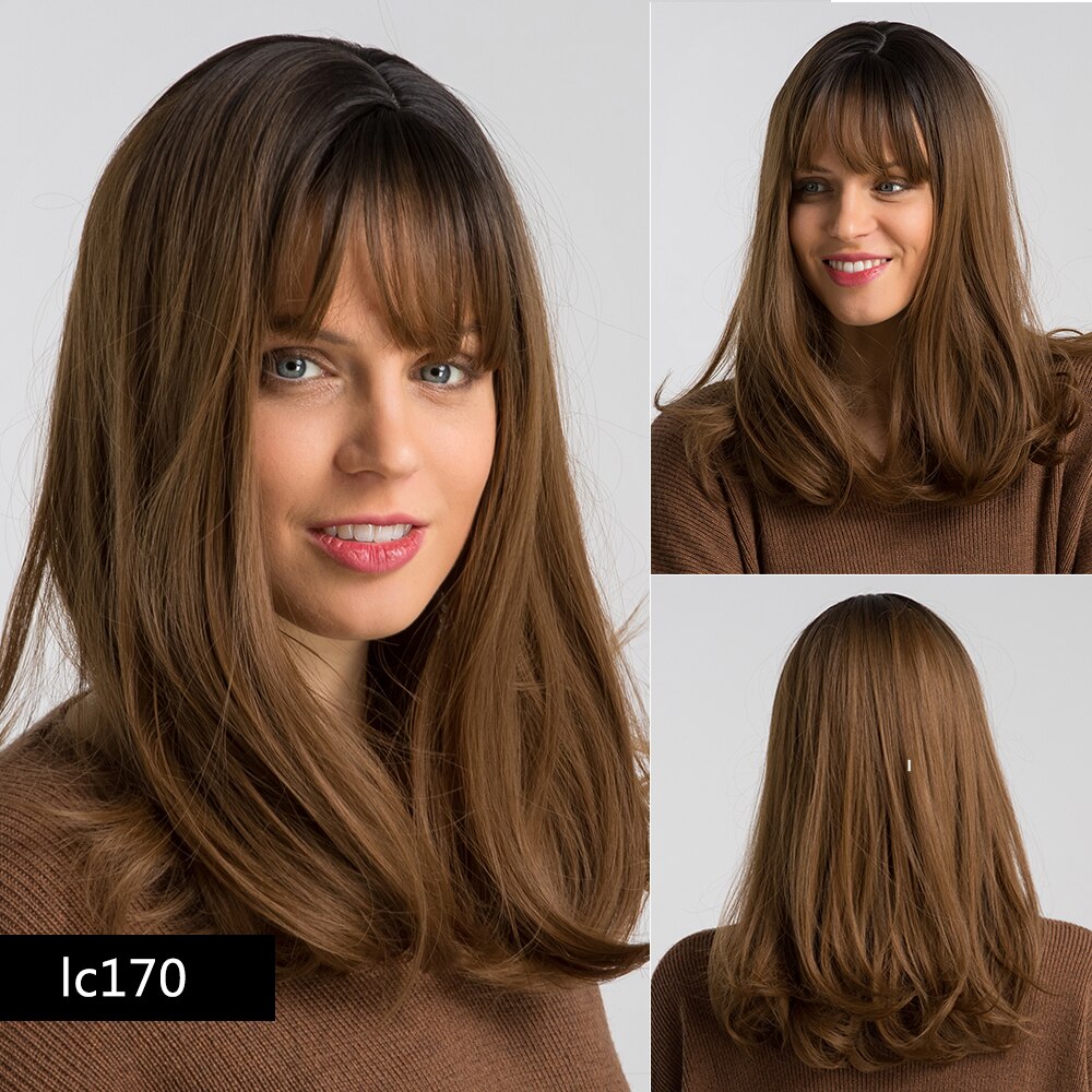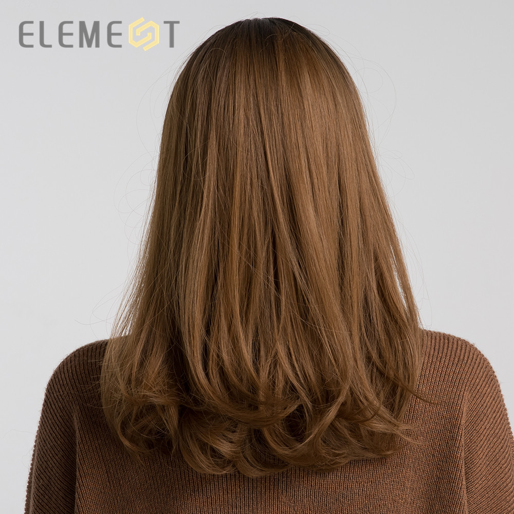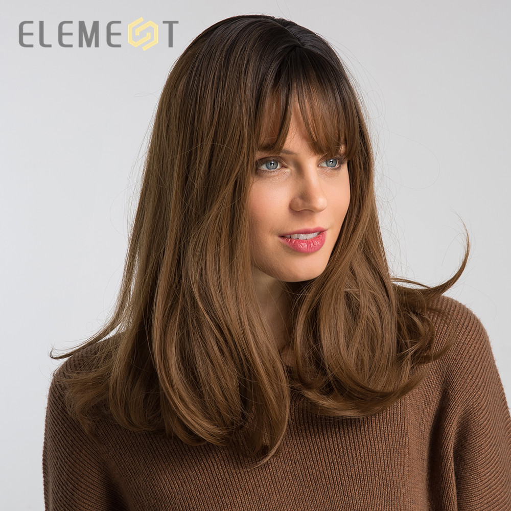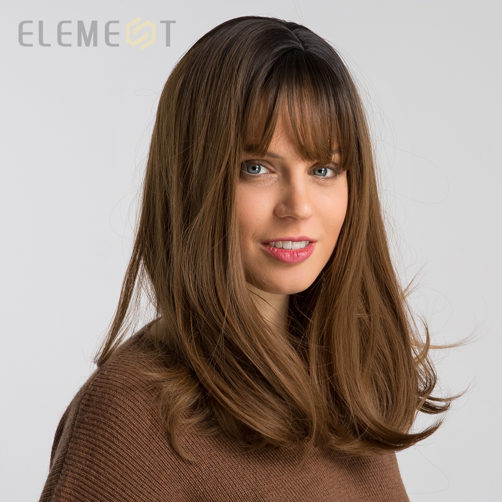 Element 16 Inch Synthetic Wig With Bangs Natural Headline Ombre Brown Color Cosplay Party Replacement Wigs for Women